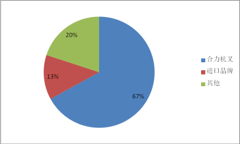 2016年湖北省叉车销售总量是8076台,其中合力杭叉占比超过67%,进口品牌大约为占比13%,其它品牌占比20%。