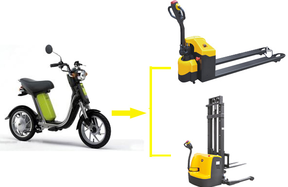 目前我国每年的电动车产销量是1亿辆,全国的电动车保有量是5亿辆,配件价格非常低廉,电控价格仅仅是几十元,而且性能稳定,质量很好,如果能充分利用电动车的配件,并且经过必要的改进,完全可以用来生产电动仓储叉车,价格将会大幅度下降。