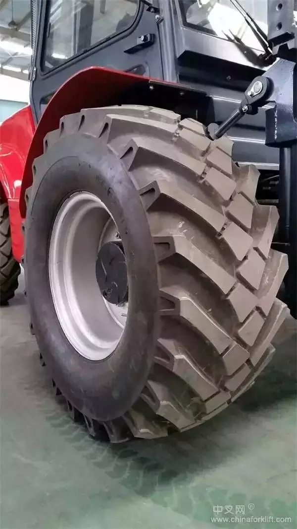 越野叉车的速度高于普通叉车,可在山地、滩头、沙地、雪地、冰面及泥泞道路等恶劣工况上行驶,普通叉车轮胎难于达到行驶要求,且安全稳定性能较差,采用越野轮胎便可轻松解决这一问题,并随处满足最稳定的行驶状态,越野轮胎具有良好的越野性能。